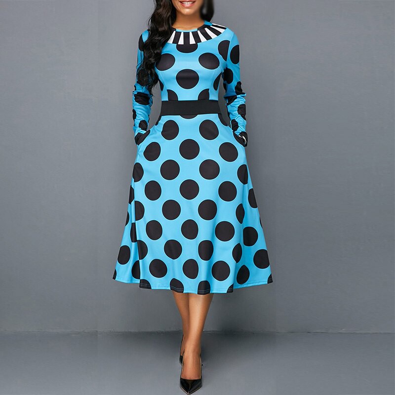 Women Swing Dress Long Sleeve Retro Polka Dot Dress Pocket Plus Size Party Evening Business Ol Shopee Indonesia