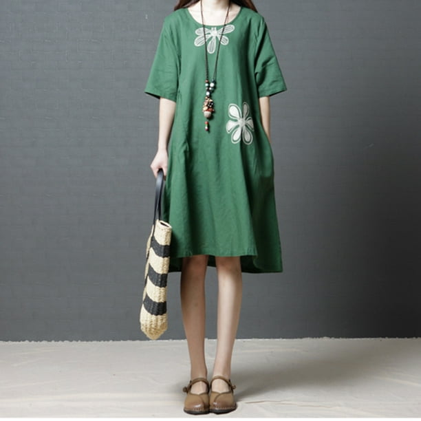 Women Casual Loose Short Sleeve Swing Dress With Pocket Cotton Linen Midi Dress - Walmartcom